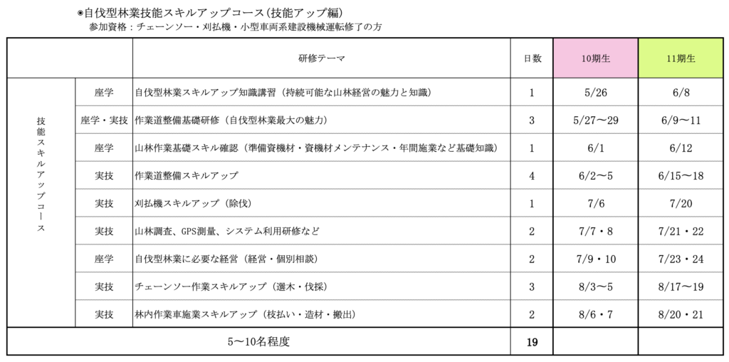 自伐型林業技能スキルアップコース(技能アップ編)19日間