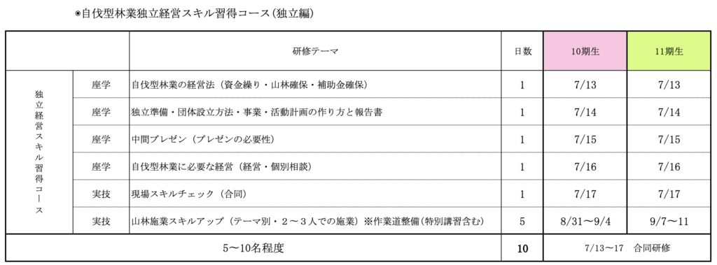 自伐型林業独立経営スキル習得コース(独立編)10日間